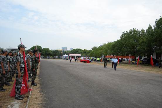 上午九时左右,同学们顶着头上的烈日,都一动不动,挺拔如松地站在整齐的方队中准备接受检阅。随着刘校长宣布“结营检阅”开始,队伍便迈着整齐的步伐走到了主席台前方中央。伴随着强而有力的呐喊,同学们将队伍扩大分散开来。一令两动的拳法,打出的不只是一种气势,更是万博同学们的一种“勇”的精神。