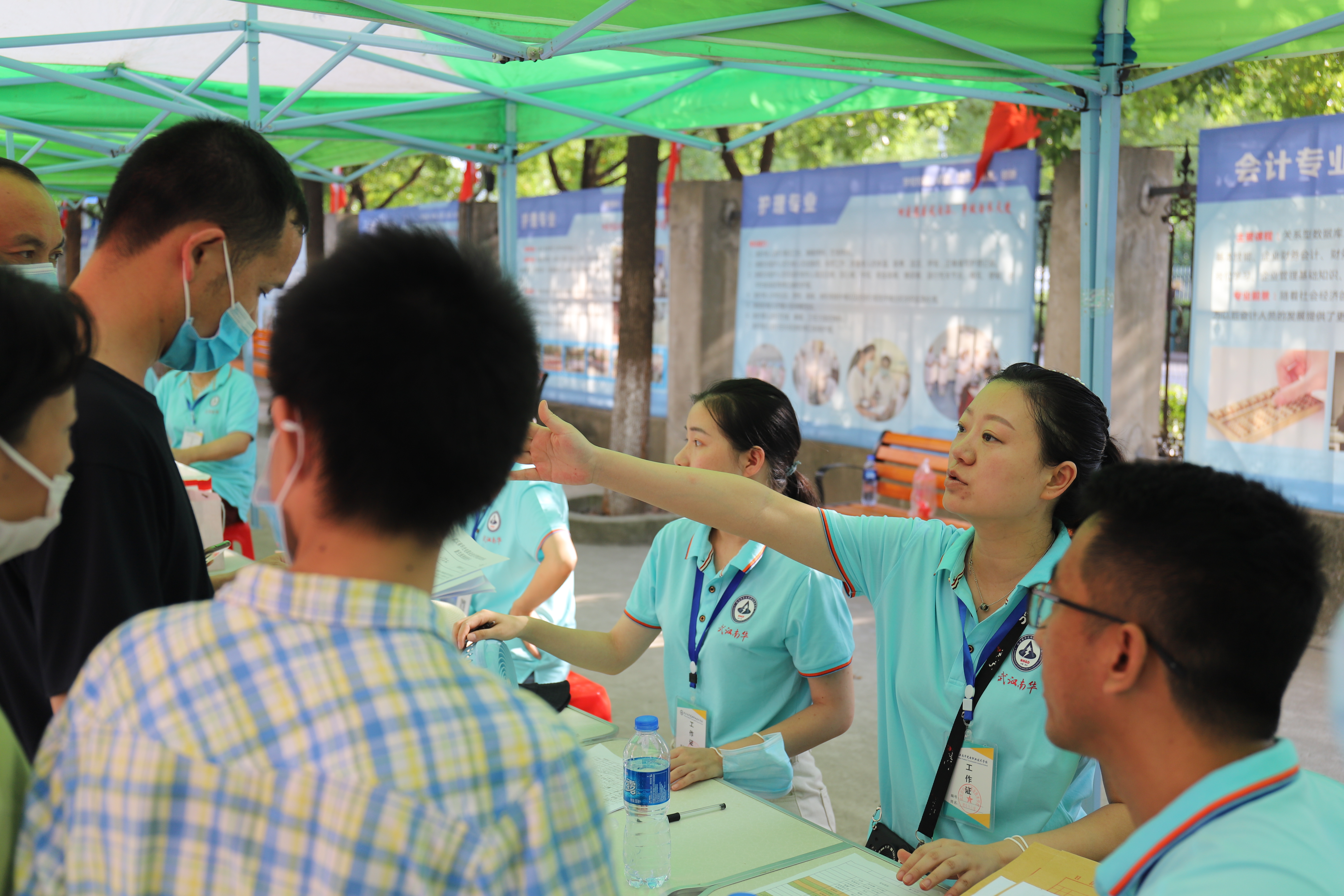 为了新生顺利完成报到,学校沿途放置了指示牌,并在每个环节安排了志愿者,以便更细致地为新同学们服务。还特别制作了图文并茂的宣传展板,为新同学们介绍专业特色、优秀教师、就业前景等。
