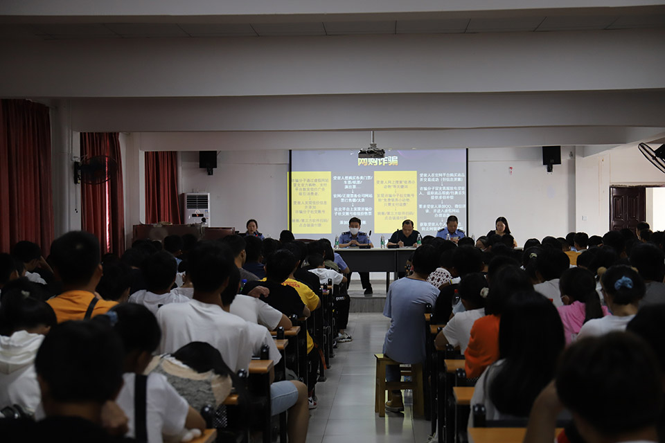 派出所民警针对目前中学生对事物的认知能力差、容易受害被骗等特点,运用通俗易懂的语言,从诈骗是什么,目前出现的有哪些形式,对应有哪些典型案例,面对各种防不胜防的手段我们该如何应对和避免,以及近期流行的网络贷款诈骗出现的原因和应对措施等方面向广大师生做了简洁清晰的宣传。